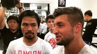 On his Instagram page (@TimTebow), Tebow posted a picture of himself with Pacquiao while they were surrounded by the media and captioned it, "Awesome being with my Filipino and Christian brother."