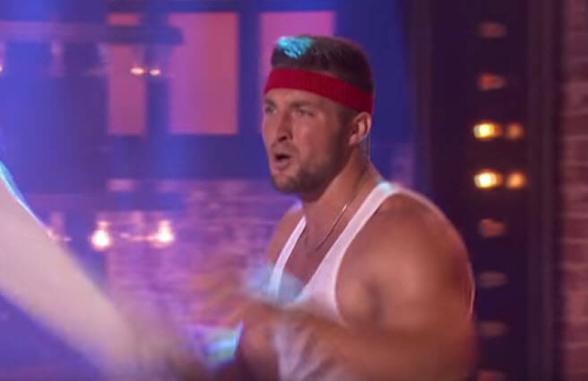 Tim Tebow performs 'Eye of the Tiger' Rocky-style in 'Lip Sync Battle'