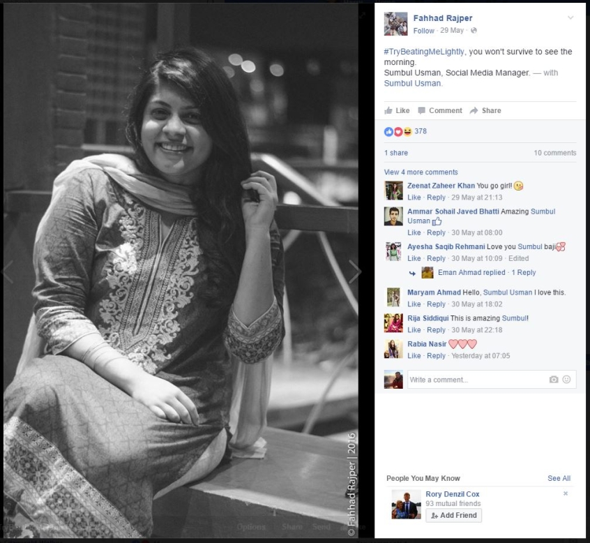 The album posted on Facebook started a trend across Pakistan and around the world based around the tag, #TryBeatingMeLightly.