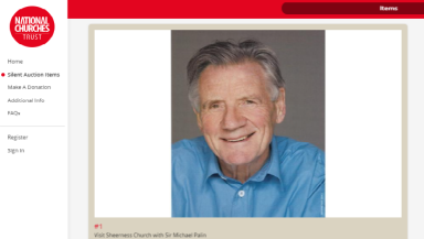 Bids are currently being taken for an item that will see Monty Python star, comedian, and writer Sir Michael Palin and his son, Will Palin, take the successful bidder and up to three guests, on a private tour around Sheerness Dockyard Church in Kent.