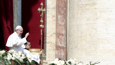 "May he (the risen Jesus) draw us closer on this Easter feast to the victims of terrorism, that blind and brutal form of violence which continues to shed blood in different parts of the world," he said, speaking from the central balcony of St. Peter's Basilica.