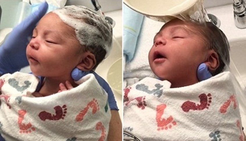 The answer is the extraordinary way newborn Amira Yvonne Glenn reacted when her hair was shampooed by a nurse for the first time.