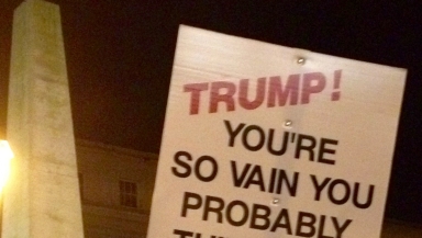 I asked a few people why they were there and what they thought about Trump. One young mother said she found him frightening, instancing his attitude to women and Muslims. Another said she didn't want her children growing up with him as a role model. Another said she was part of a mixed-race family and believed Trump's America would be one of segregation and intercommunal strife.
