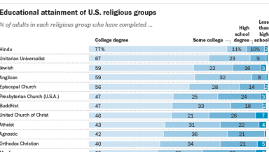 Pew Research Center has released a survey of the most and least educated US religious groups. It makes interesting reading, but it probably doesn't tell us as much as some would like it to.