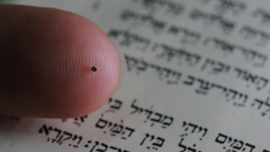 The exhibit, called 'And then there was Nano', is part of the Israel Museum's 50<sup>th anniversary celebrations. It is housed in the museum's Shrine of the Book, alongside the Dead Sea Scrolls – the oldest known copies of biblical texts. It will be on display until December 2016.