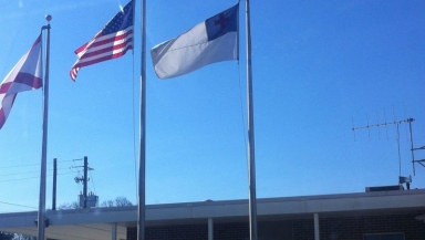 The city of Glencoe in Alabama removed a Christian flag from a pole outside its police station after an atheist group sent a letter of complaint.