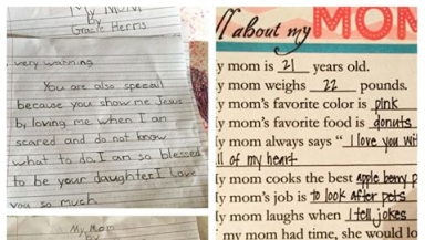One portion of the collage featured the letter written by her daughter Gracie. The young girl said that her mum was very special because "you show me Jesus by loving me when I am scared and do not know what to do. I am so blessed to be your daughter."