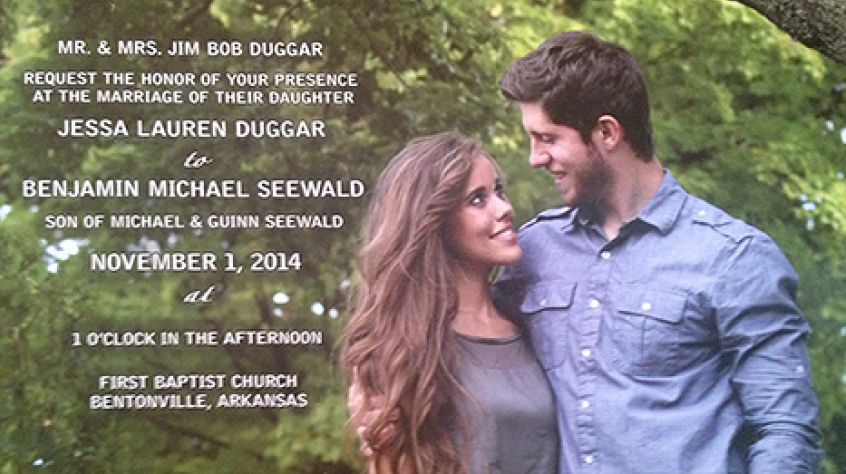 With less than a week to go before Jim Bob and Michelle Duggar give their daughter Jessa's hand in marriage, the bride-to-be and her fiancé Ben Seewald revealed the invitation for their upcoming wedding on Saturday.