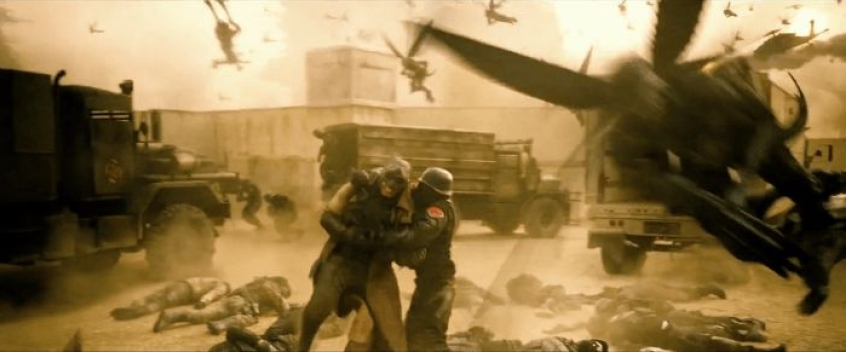 "Zack had a great idea of this sort of nightmare-ish vision, almost a vision of the future, a post-apocalyptic vision. It's like a dream that Ben has, so we wanted to, it has almost a Mad Max quality to it where it's like the end of the world, trying to survive and then of course Superman and his minions come," Wilkinson stated.