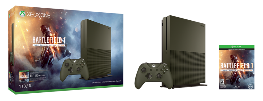 Those who want to go bigger can opt for the 1TB version of the Xbox One S, which will also be bundled with "Battlefield 1." This version of the console is colored army green.