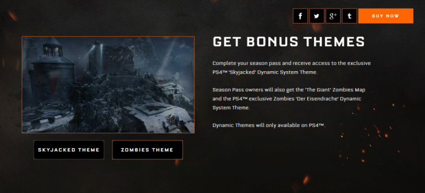The webpage for the bonus themes that PS4 players will get when they avail of the promo included a photo of what is labelled as the Zombie theme from the second "Call of Duty: Black Ops 3" DLC.
