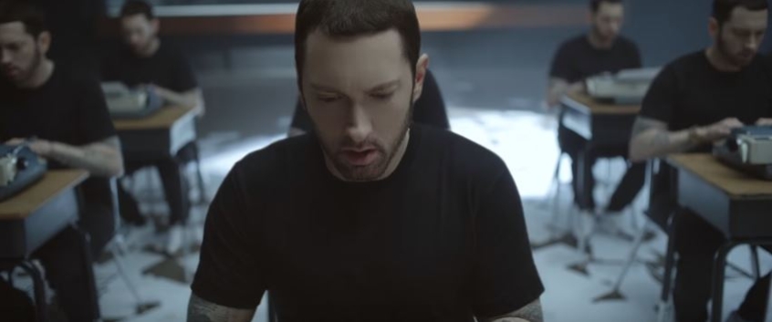One of the main highlights of the video is a room full of Eminems each with a typewriter. The scene was inspired by the Infinite Monkey Theorem wherein all the Eminems are typing a bunch of random letters with no particular pattern.