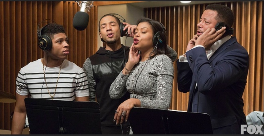Hakeem (Bryshere Y. Gray), Jamal (Jussie Smollett), Cookie (Taraji P. Henson) and Lucious (Terrence Howard) record a single for the Lyons Legacy album. Fox