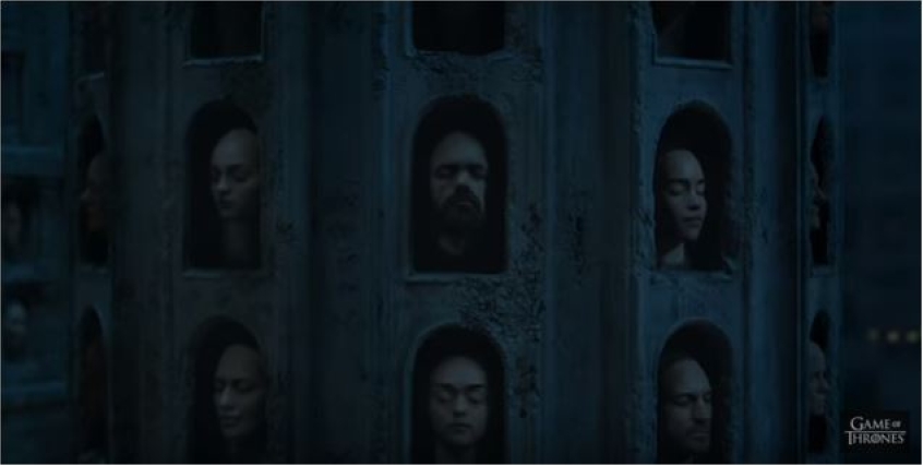 The clip opens to the Hall of Faces, which Arya (Maisie Williams) saw back in the season 5 finale while training to be No One.