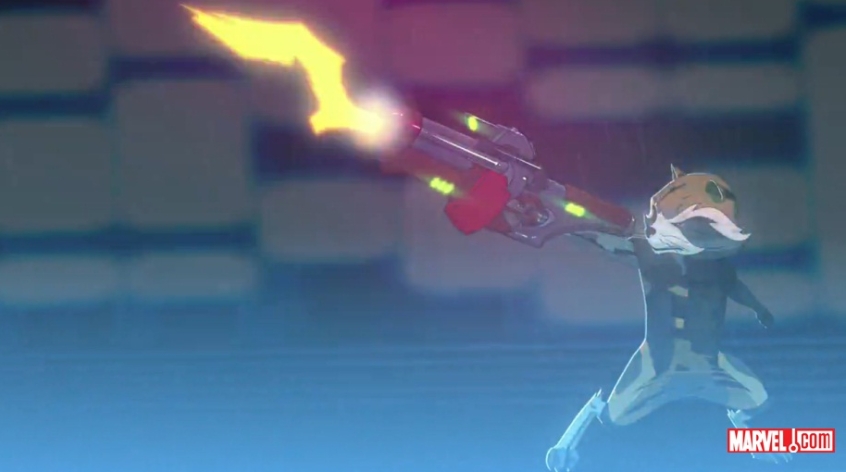 Rocket Raccoon in the "Guardians of the Galaxy" animated series. [Screenshot: "Marvel's Guardians of the Galaxy" NYCC test footage | Marvel]