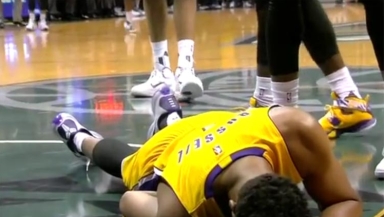Russell lay sprawled on the floor for several minutes, while most are concerned his status. The number two pick was eventually taken to the locker room, and it was learned that he had suffered a bruised glute.