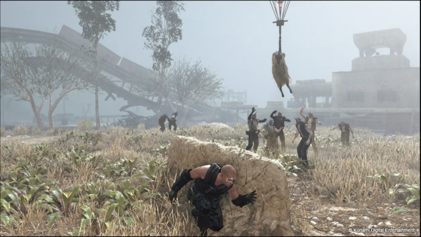 Apparently, a wormhole opens in the sky and swallows the Mother Base and its remaining survivors into a different reality where the world is populated by zombie-like beings called "creatures." Players will have to work together with materials they can find in the alternate reality in order to get back to their original world.