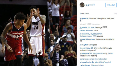 Aside from that, he may want to keep his emotions in check. Green was fined $25,000 by the NBA for that gun and throat-slash gesture he did when the Heat played the Wizards.