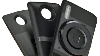 Based on the image, one MotoMod modular add-on will function as a full camera lens, transforming the new Moto Z into a true point-and-shoot camera. While the camera setup featured on the Moto Z remains unconfirmed, it can be expected that the MotoMod module will have a different, upgraded lens assembly. Meanwhile, another accessory has what appears to be a recessed groove in the middle, and it seems to be a fingerprint sensor.