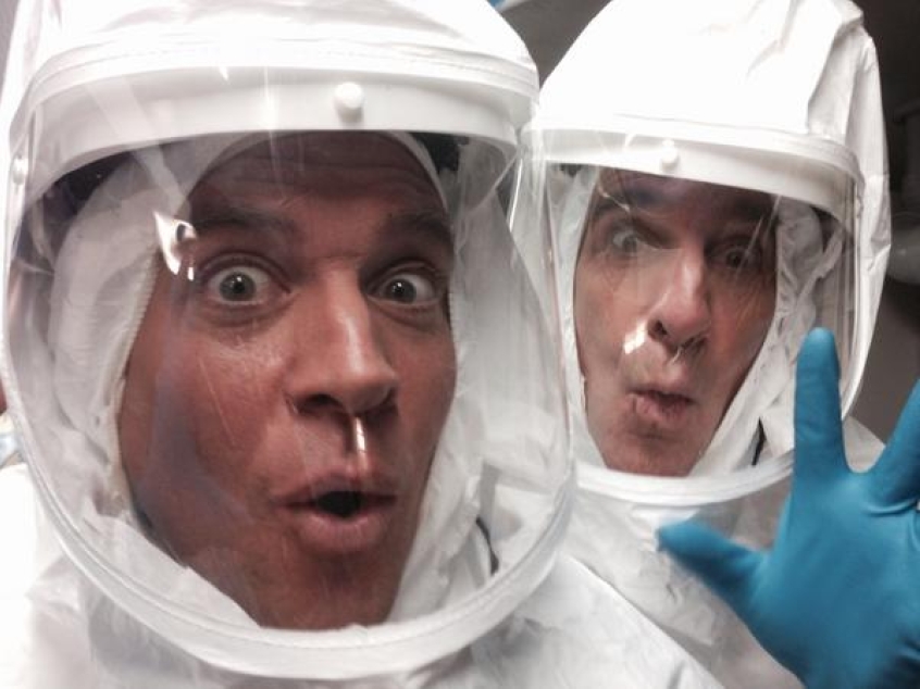 In one of his Twitter posts, Weatherly posed with NCIS: New Orleans' Scott Bakula, who will portray the role of Agent Pride in the series. The picture showed the actors goofing off on the set while filming what seems to be an investigative scene.