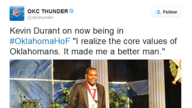 Oklahoma City Thunder news 2015: Kevin Durant inducted into Oklahoma Hall of Fame 2015