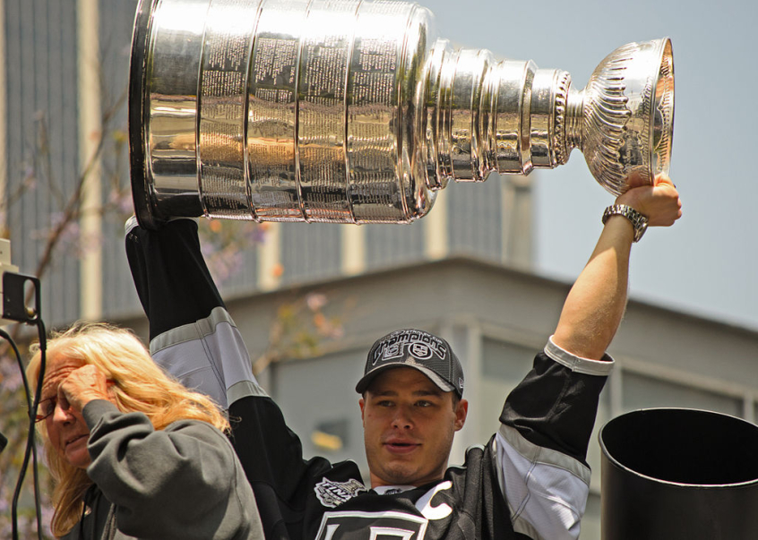 The NHL Stanley Cup is held by the Los Angeles Kings' Dustin Brown in this file photo. Wikimedia Commons/File