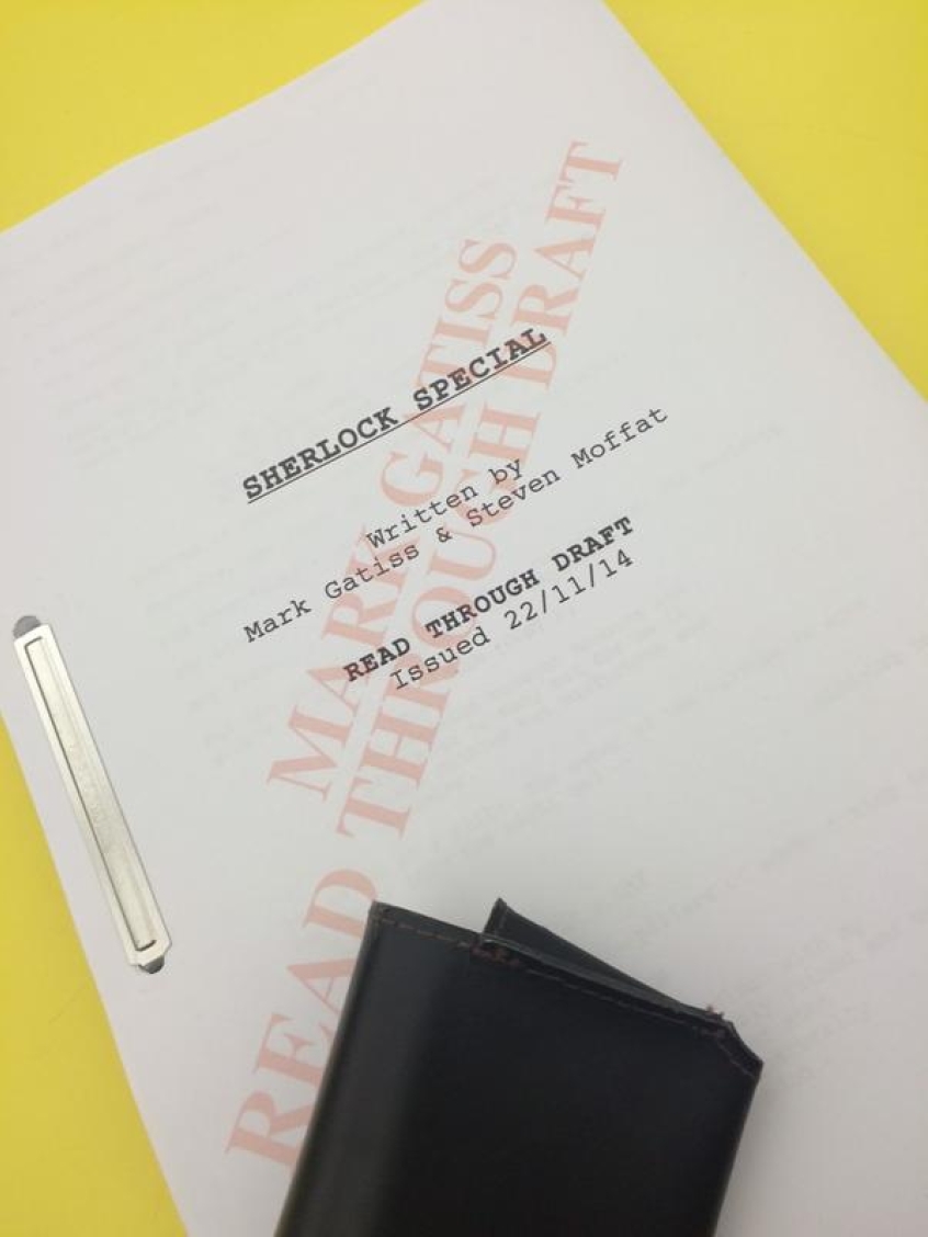 Also, producer Sue Vertue tweeted a picture of the script's cover page titled "Sherlock Special" written by Mark Gatiss and Steven Moffat. She captioned it with "This is what we've been doing today! Later on a pic of Sherlock and John as they'll appear in the Special #221back."