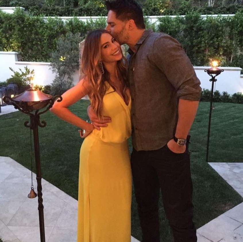 The "Modern Family" star was joined by her fiancé, Joe Manganiello, for a candle-lit dinner party. She posted 11 photos of the party on Instagram, starting with one taken at the start of the evening as she stood in her garden with the "True Blood" actor. He had his arm around her waist while he placed a tender kiss on her head. The actress wore a long yellow dress, while Manganiello wore a grey shirt and black pants. The shot was captioned, "Happy bdaaaay to me!!!"