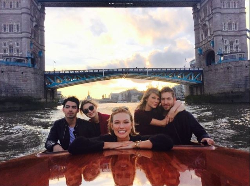 Taylor Swift and Calvin Harris enjoy a romantic boat ride with friends Gigi Hadid, Joe Jonas, and Karlie Kloss Instagram/ taylorswift