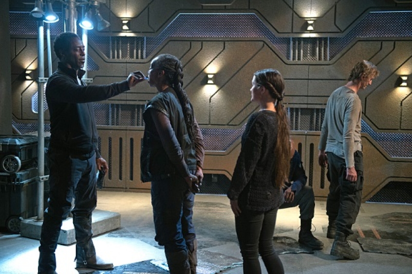 Jaha (Isaiah Washington) appears to be handing out the new pain relief drug around the camp, most specifically to the younger members, stating the "chip" is merely a means of helping the community. When asked if causes any side effects or pain, Jaha simply states "nope."