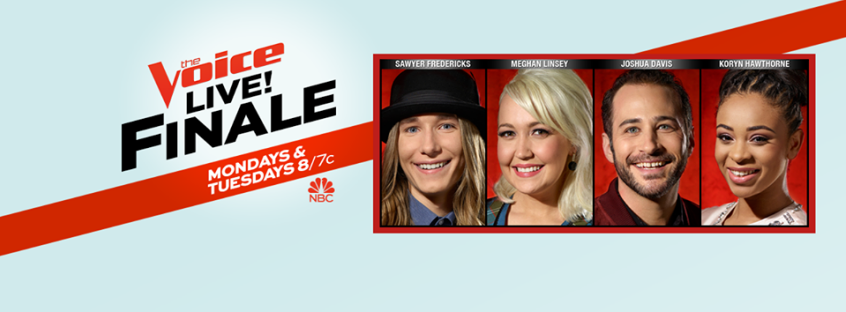 Monday night's final performance episode will feature this season's top four, composed of Team Pharell Williams' Sawyer Fredericks and Koryn Hawthorne, Team Adam Levine's Joshua Davis, and Team Blake Shelton's Meghan Linsey. All four contestants will perform a song chosen by the fans, a duet with their respective coaches, as well as their winning solo number.