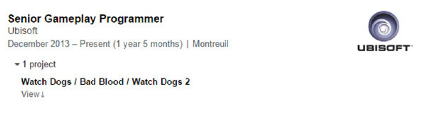 Videogamer.com spotted the online CV of Ubisoft Paris' senior gameplay programmer Julien Risse which he posted on LinkedIn, where the sequel to the record-breaking open world action-adventure game released in 2014 was also listed alongside the first Watch Dogs and Bad Blood.