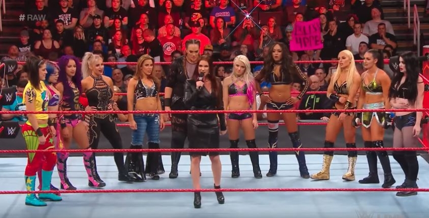 McMahon then turned to the wrestlers behind her and uttered, "All of you turned that revolution into an evolution." The female wrestlers on stage with McMahon were emotional when she made the announcement, and the entire audience cheered on.